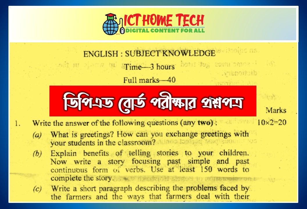 ডিপিএড ২০১৮ সালের বোর্ড পরীক্ষার প্রশ্নপত্র ডাউনলোড