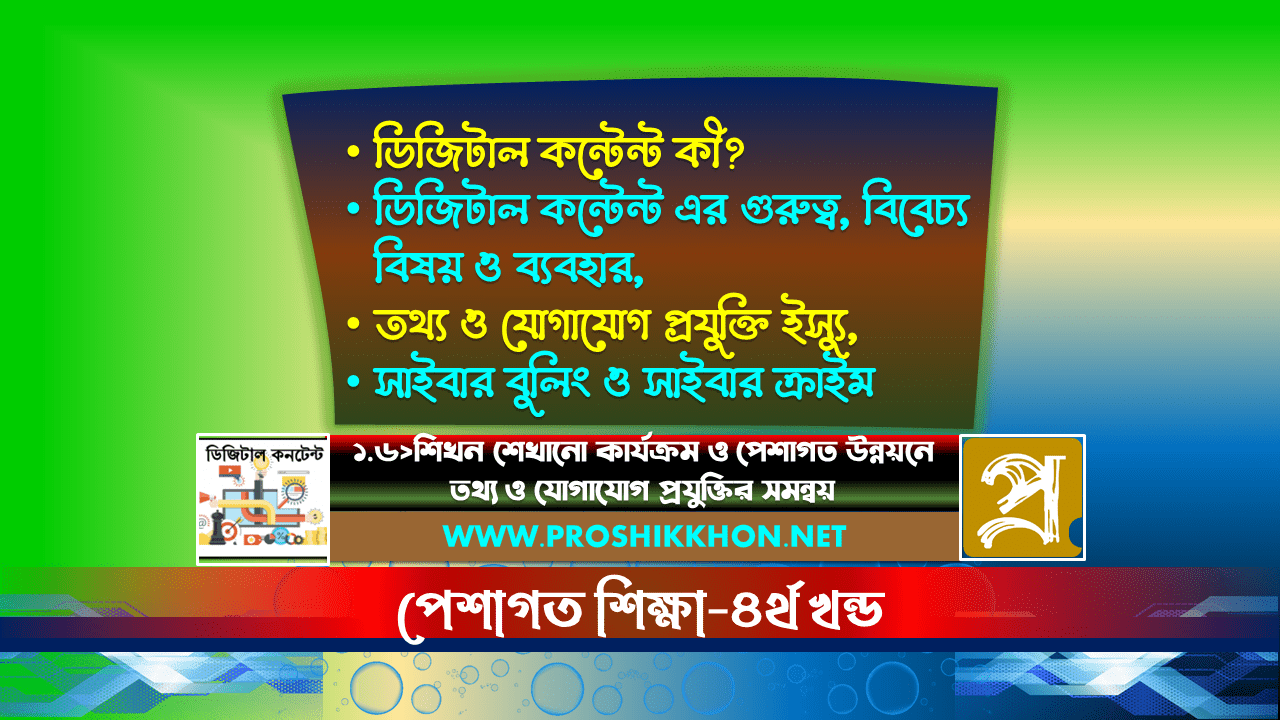 ক্লাস-০৮: ডিজিটাল কন্টেন্ট কী, ডিজিটাল কন্টেন্ট এর গুরুত্ব, বিবেচ্য বিষয় ও ব্যবহার, তথ্য ও যোগাযোগ প্রযুক্তি ইস্যু, সাইবার বুলিং, সাইবার ক্রাইম